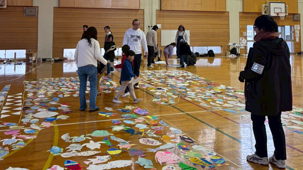 750匹の「おさかな塗り絵」が集結。久賀小学校に巨大アートが出現!
