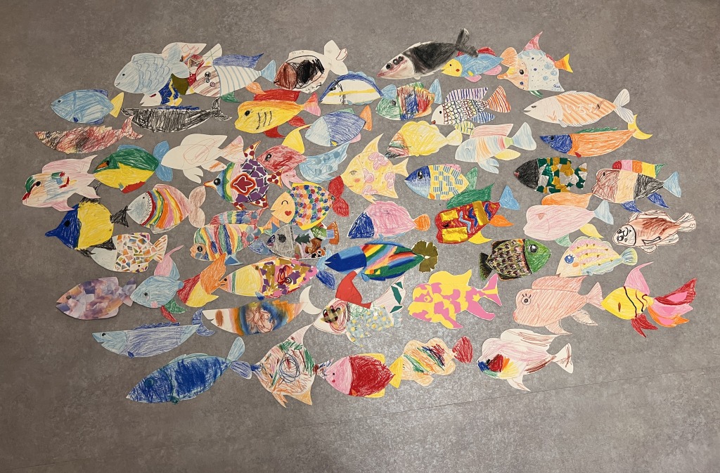 ワークショップでは、子供たちがそれぞれの感性でおさかなを彩りました。